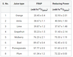 Ascorbic Acid, a regimen claimed to use in the prevention of primary symptoms of COVID-19, is a hydrophilic anti-oxidant found plentiful in fruit juices, which also known to possess total anti-oxidant activity. Fruits play an essential part in our healthy diet. As many fruits contain anti-oxidant properties which means the presence of anti-oxidant constituents. In present study samples of the various fruit juices obtained from the local market were seek out for the ascorbic acid content and estimated for their anti-oxidant activity. For determining ascorbic acid content, the dichlorophenol-indophenol method was employed, while anti-oxidant activity was studied by employing Ferric Reducing Antioxidant Power assay and reducing power assay method. As per the result obtained, the high amount of ascorbic acid was found in amla juice while bael juice was found for good anti-oxidant activity. The conclusion results out from the study that fruits rich in an appreciable amount of ascorbic acid possess good anti-oxidant activity. Those juices results in best anti-oxidant activity indicate the presence of phenolics, i.e. phenolic compounds.