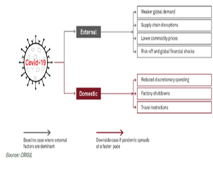 Coronavirus disease (COVID-19) is a contagious disease caused due to a “Severe Acute Respiratory Syndrome Coronavirus -2 virus” (SARS-COV-2). People who fall ill will experience mild to moderate fever and will retrieve without any special treatment. This pandemic was first seen at Wuhan, China in December 2019. After seen it’s dreadfulness it was declared as a “public health emergency of international concern” (World Health Organization, WHO). As on 1 May 2020 more than 35000 cases have been reported in India resulting in more than 1147 deaths in India till date. It has also led severe socio-economic global disruption. Presently significant slowdown is experienced by Indian economy over the past few quarters. To rectify sluggish consumption demand and investment a numeral of incentive measures has been taken to retrieve the economy towards prosperity. The last quarter of the current fiscal exhibits robust prospect of improvement. However, the new COVID-19 epidemic has contrived the recovery exceptionally arduous in the near to middle terms. The pandemic has thrown new threats for the Indian economy from demand as well as from the supply side. This study is descriptive. The objective of the current study is to find out the impacts of the outbreak of COVID-19 on different sectors of our country. In conclusion, this study suggests policy measures to safeguard the Indian economy from the outbreak of it and bring it back on the growth path.
